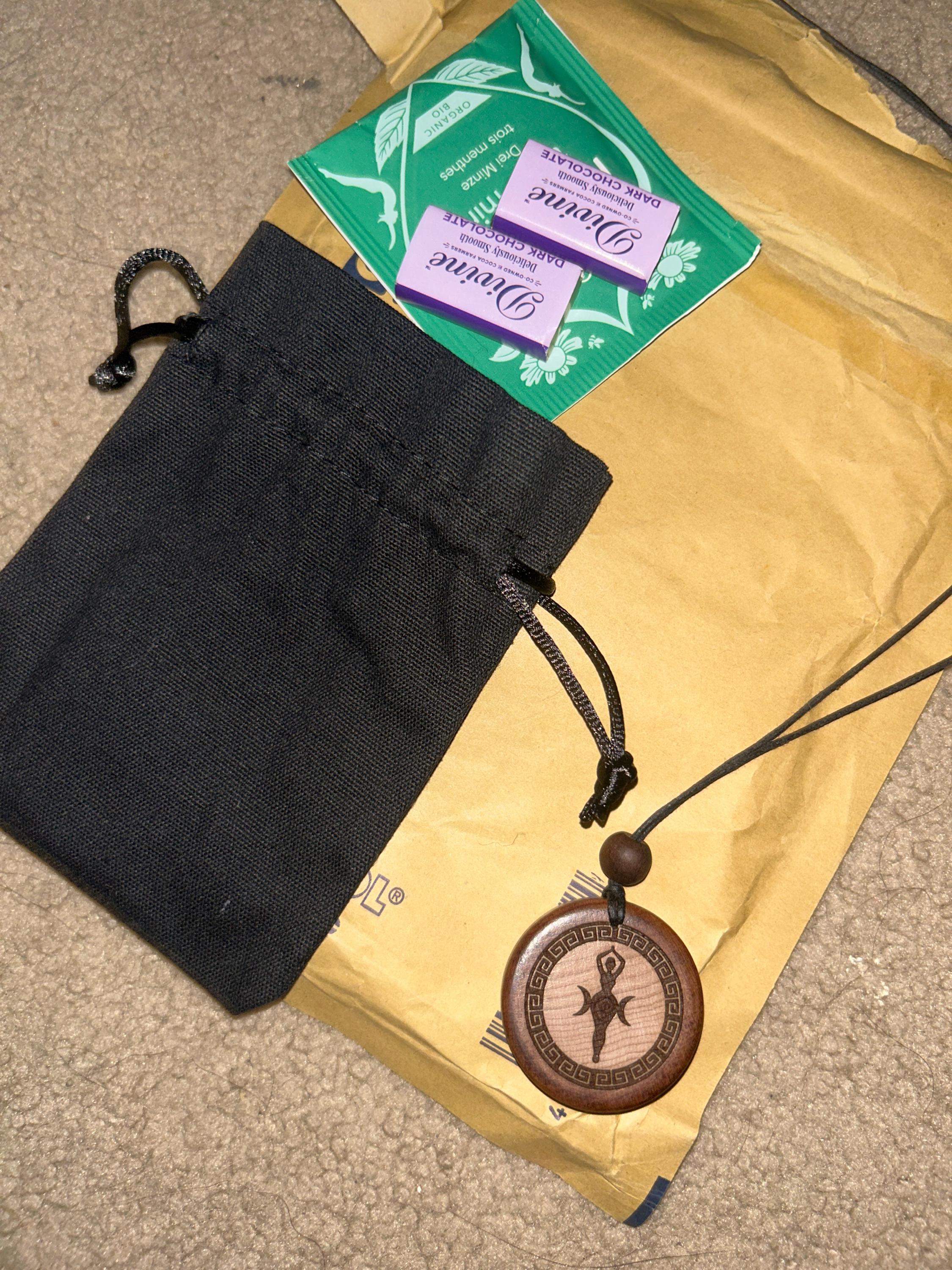 The quality of the necklace was better than I expected! I was shocked by how much more I liked it after receiving it. The wooden pendant is thicker than it is in the picture, so I was happy about that too. Of course, being in the U.S., the package came only three days after the expected arrival. I didn’t mind, but it’s something to consider if you are buying someone a gift. Otherwise, this is a great product and I love how I can have a necklace of the Goddess I worship! Thank you!