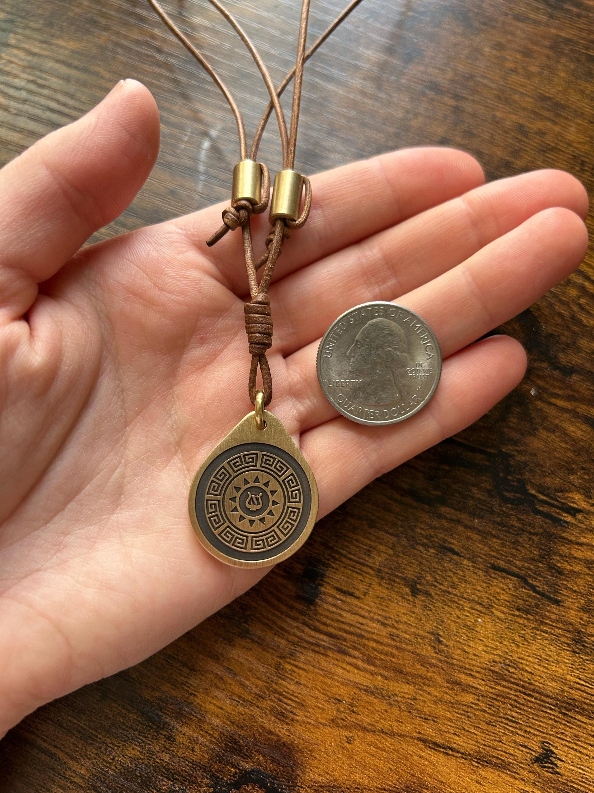 Material: Solid Brass, Leather Cord.