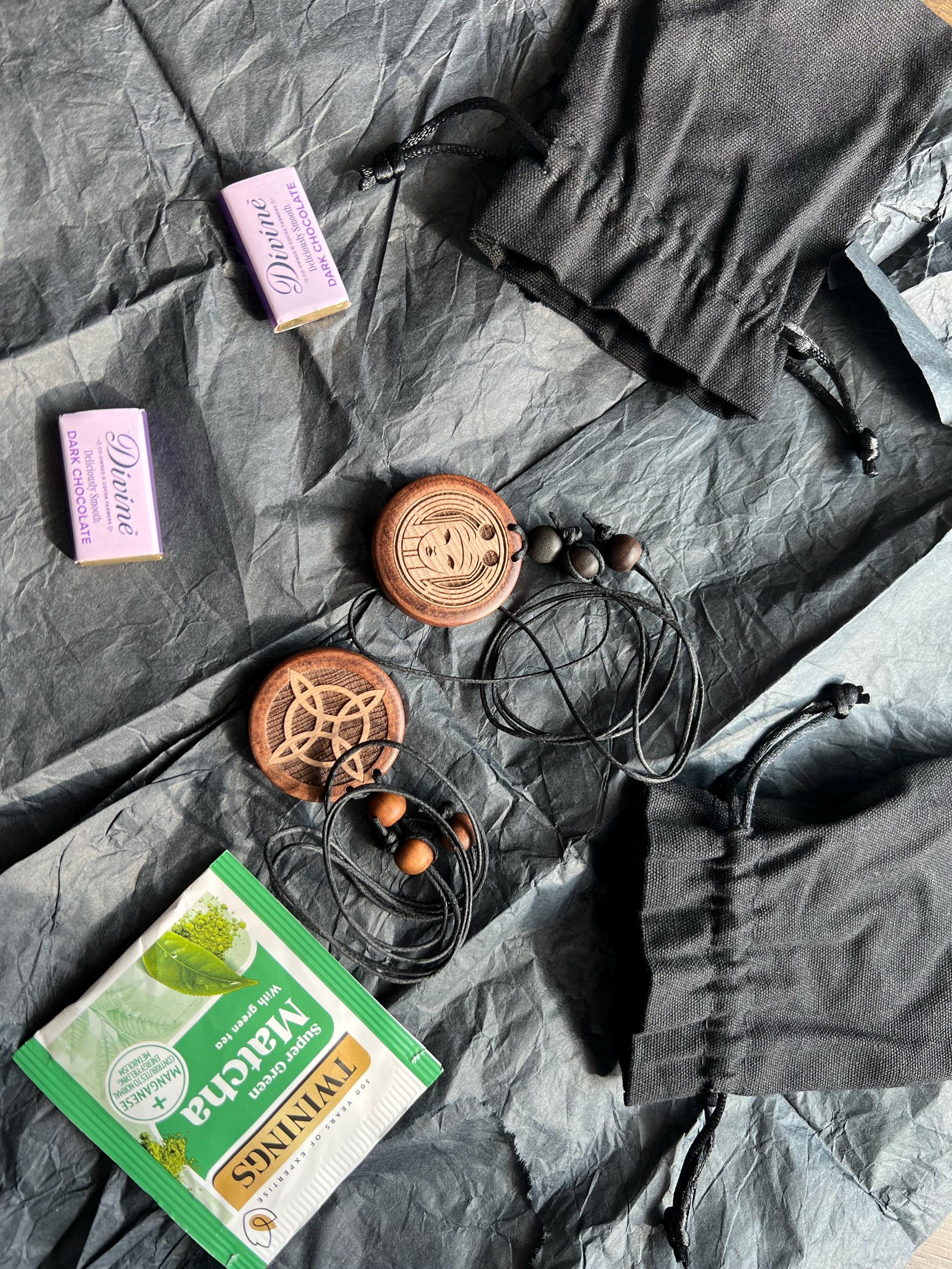 Care advice: Do not immerse your wooden necklace in water or wear it while bathing, showering or swimming.