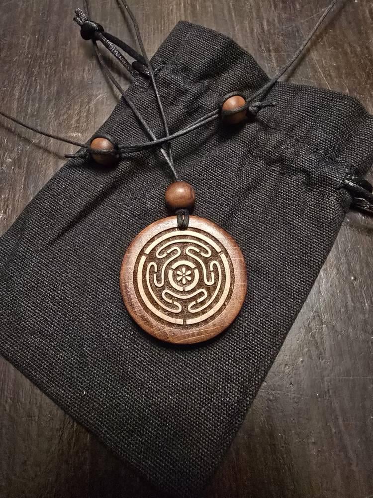 Necklace Wheel of Hecate (Strophalos of Hekate) Pendant, Talisman-Woodburned Ancient Greek Symbol Goddess Hecate Amulet. Gift for Witch.